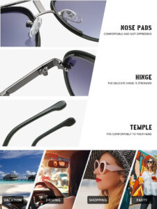 Le style basique et simple de ces lunettes les rend polyvalentes, idéales pour compléter diverses tenues, que ce soit pour des sorties décontractées, des vacances ou des activités en plein air. En plus de leur esthétique attrayante, elles protègent également vos yeux des rayons UV, alliant ainsi mode et fonctionnalité. Ces lunettes sont un choix parfait pour celles qui cherchent à ajouter une touche moderne à leur collection d’accessoires.