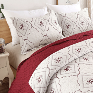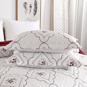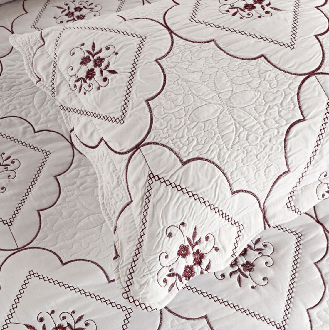 Couvre-lit brodé 3 pièces Queen King Size Floral Couvre-lit doux et respirant à fleurs Bordeaux Blanc Couvre-lit brodé Literie de Noël Lit Décoration de la maison.