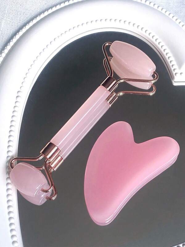 Ensemble d’outils de massage facial, avec rouleau massant et plaque de gua sha, pour le corps et le dos – Rose/Blanc/Vert au choix