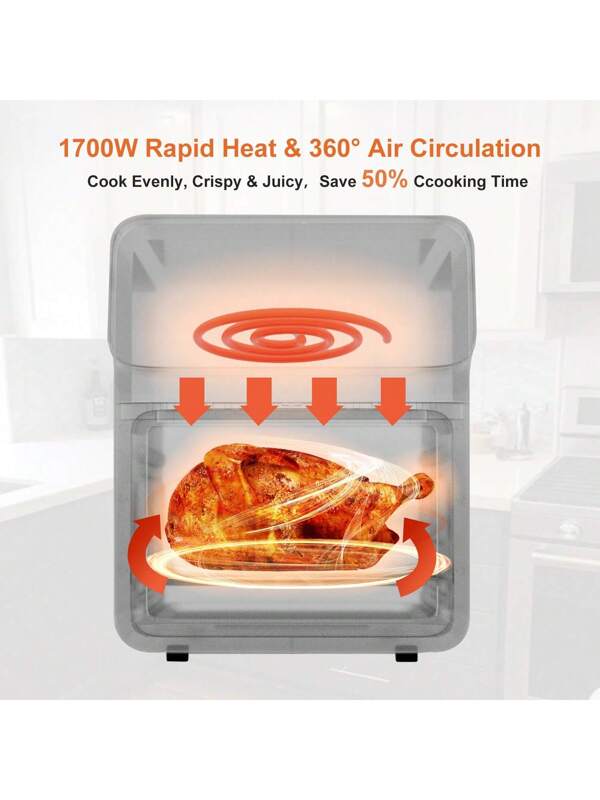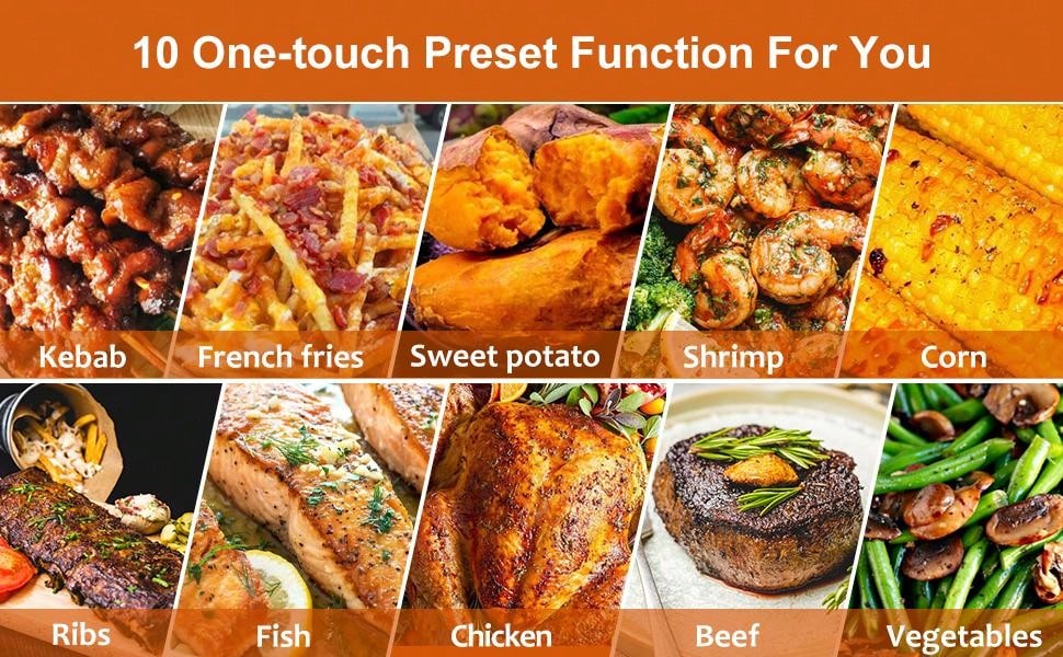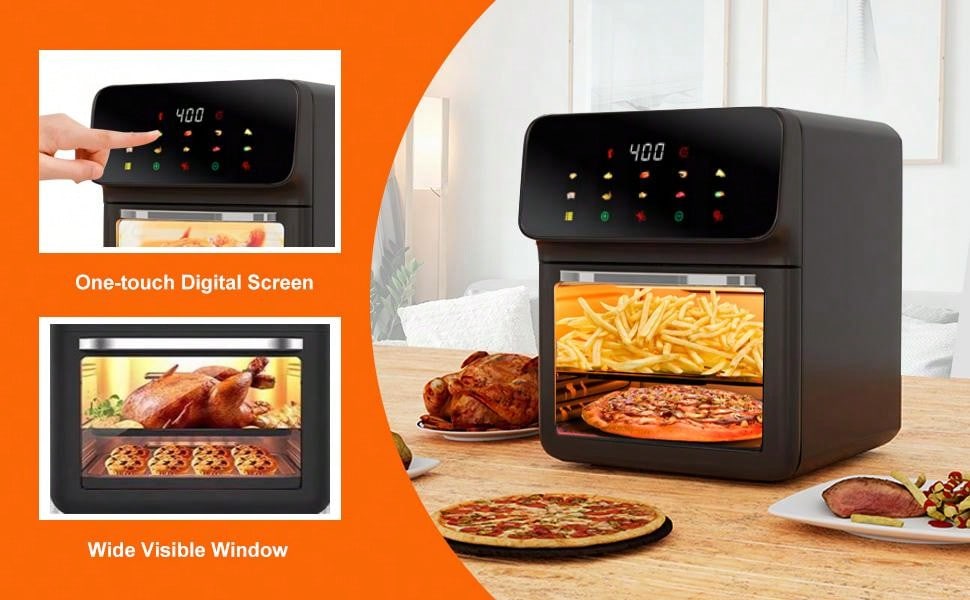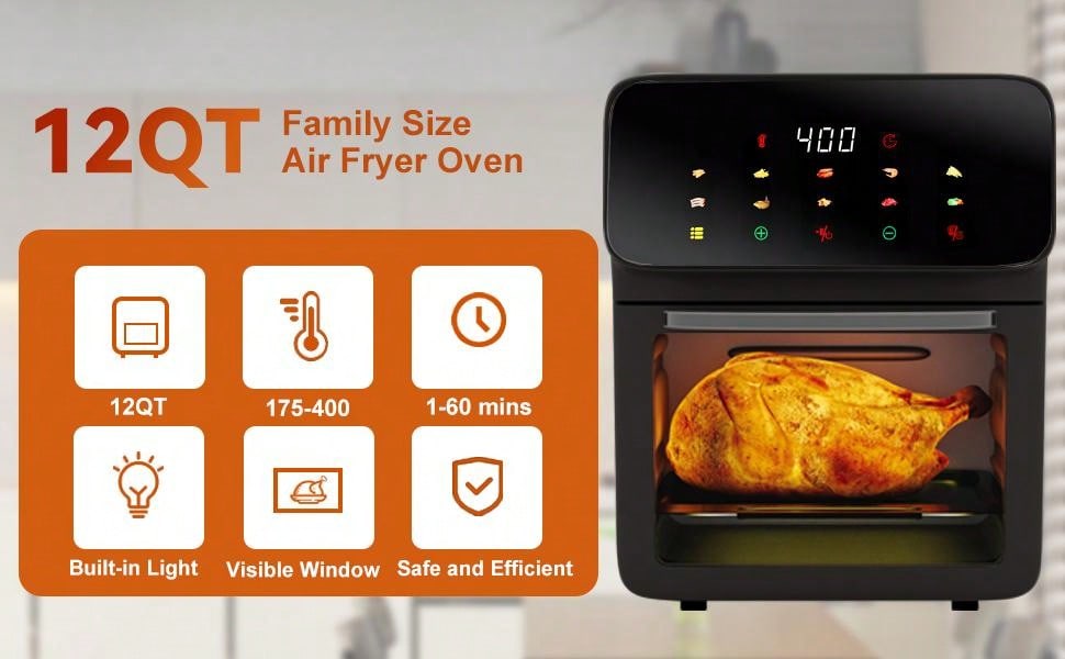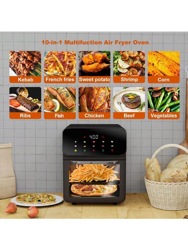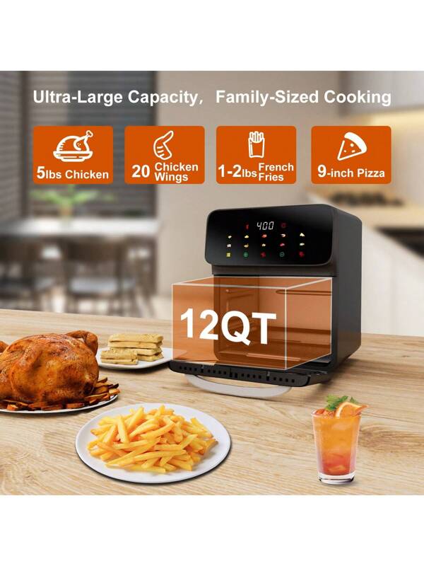 Friteuse à Air 12L, Pour Frites, Plats Surgelés, Légumes et Viandes Juteuses, Moins d’Huile, Repas Faciles et Sains, Four à Convection 10-en-1 avec 10 Programmes Prédéfinis et Écran Tactile