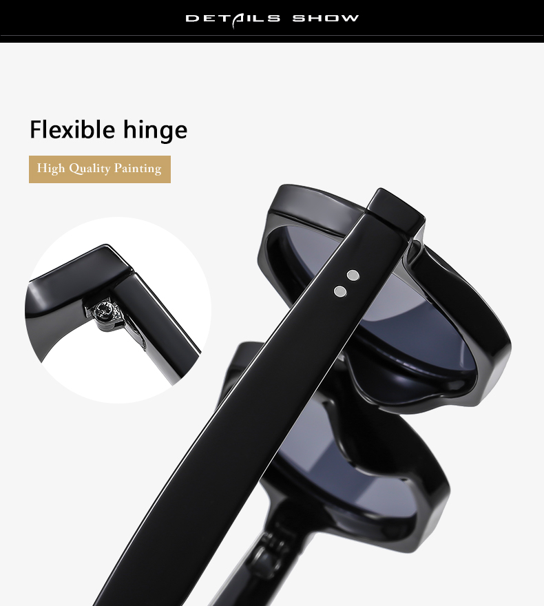 Les “clous de riz” ajoutent des accents subtils et vintage sur la monture, renforçant l’esthétique rétro. Polyvalentes, ces lunettes sont conçues pour convenir aussi bien aux hommes qu’aux femmes, avec un look à la fois stylé et décontracté. Elles offrent une protection UV essentielle pour les journées ensoleillées, tout en restant légères et confortables à porter.