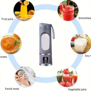 Gobelet mixeur portable sans fil avec affichage LED 450 ml, 3 modes – Idéal pour préparer des jus de fruits, jus de légumes, milkshakes, smoothies. Appareil de cuisine, équipement de camping, petit outil de cuisine.
