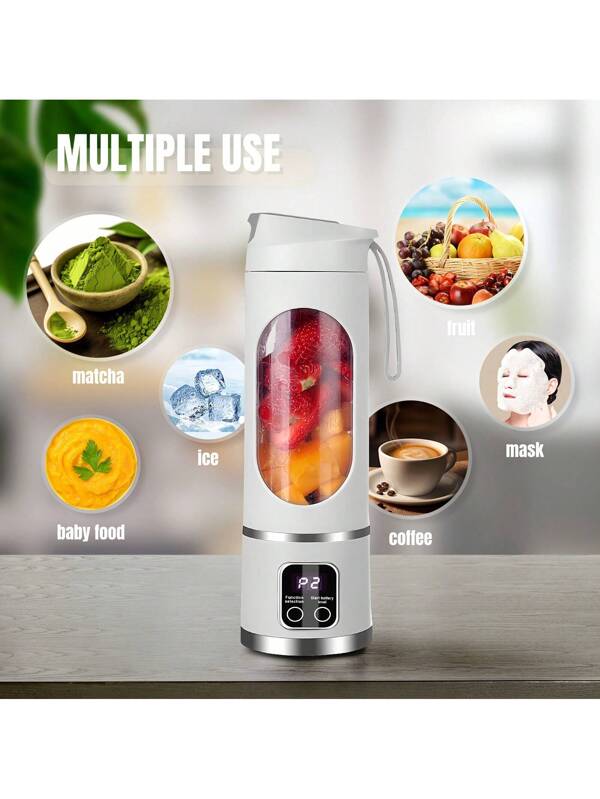 Gobelet mixeur portable sans fil avec affichage LED 450 ml, 3 modes – Idéal pour préparer des jus de fruits, jus de légumes, milkshakes, smoothies. Appareil de cuisine, équipement de camping, petit outil de cuisine.