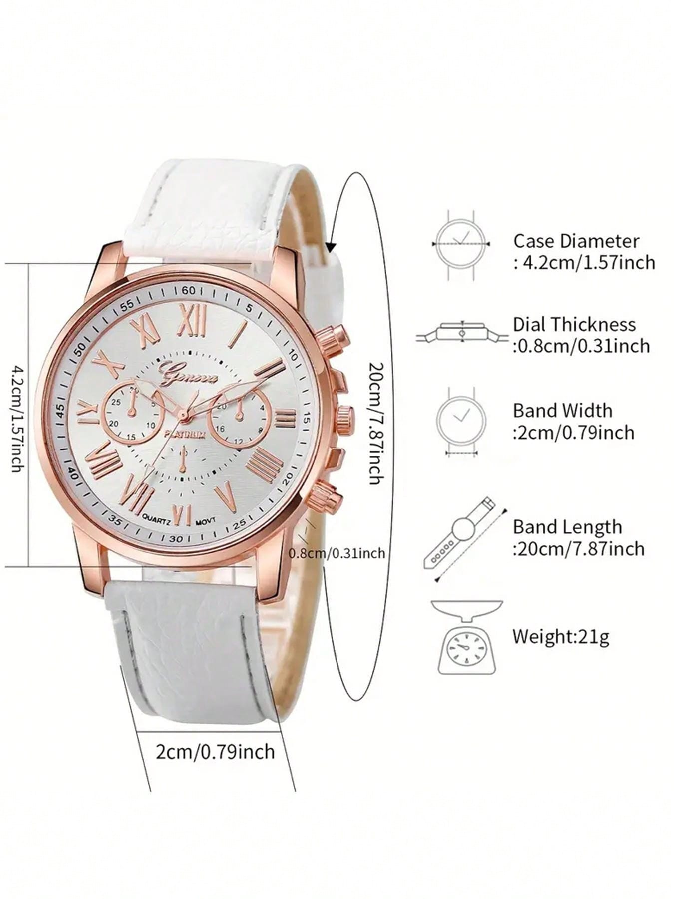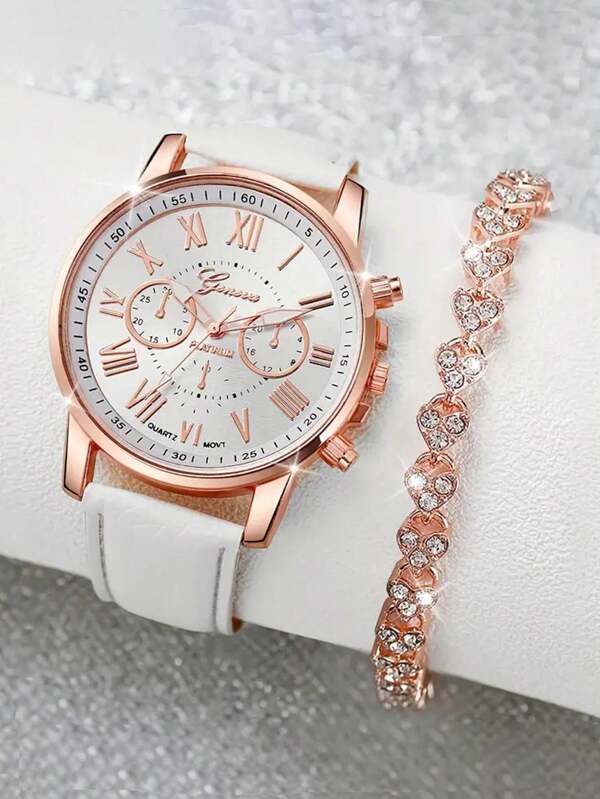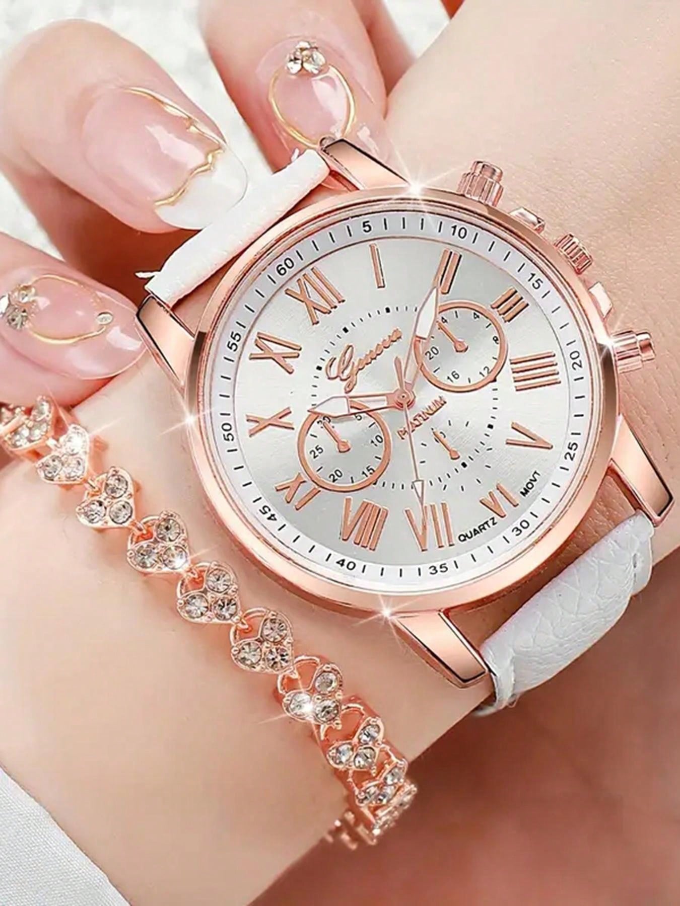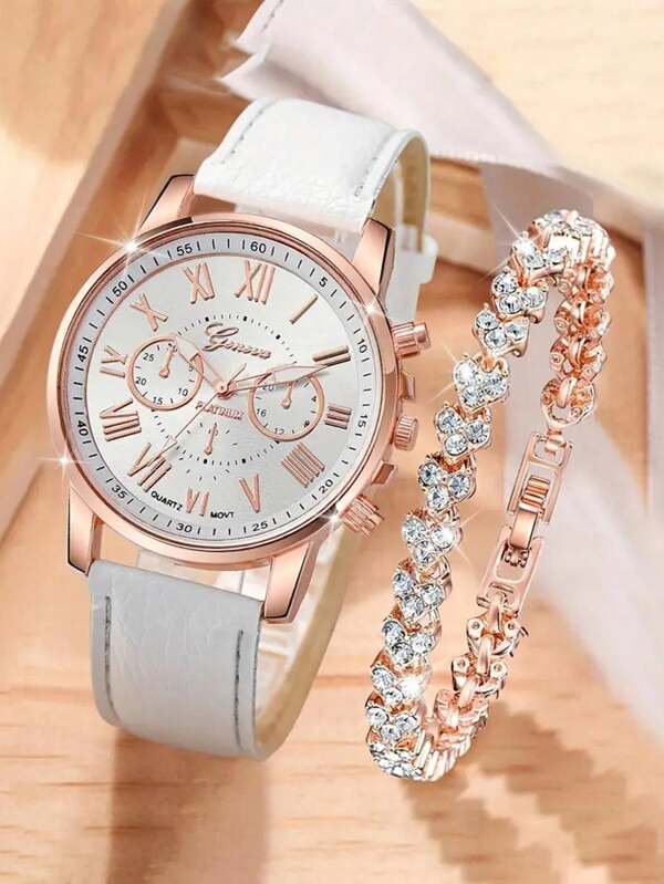 Montre pour femme – Montre quartz décontractée à aiguille ronde avec bracelet en simili cuir et bracelet assorti, excellent cadeau pour maman.