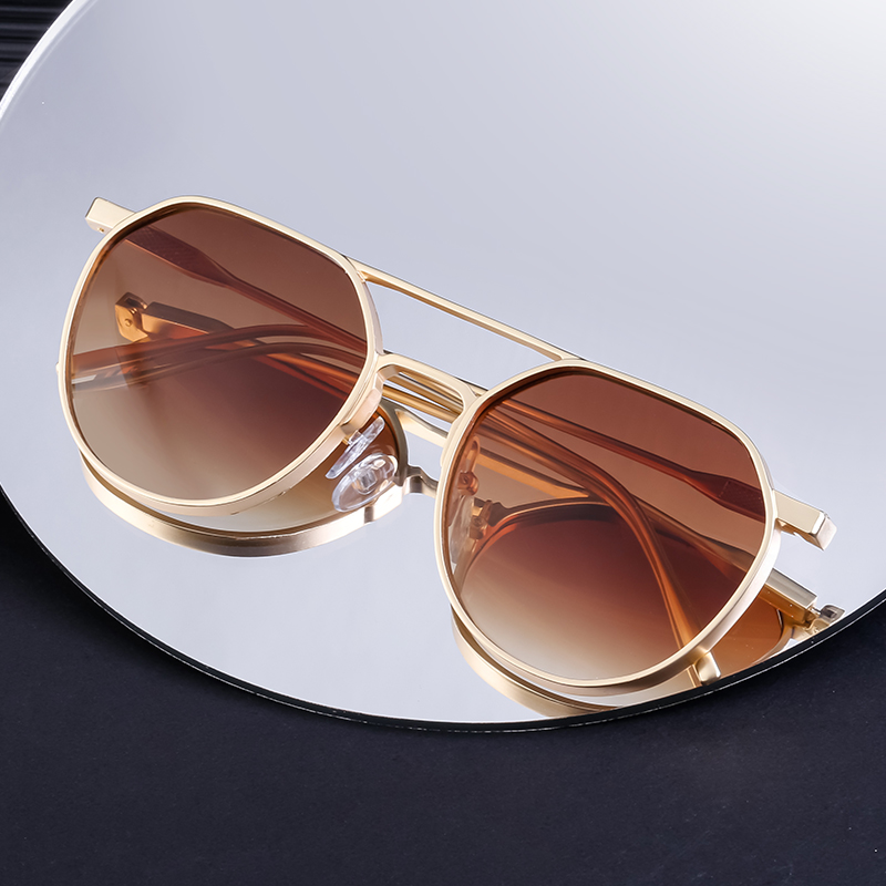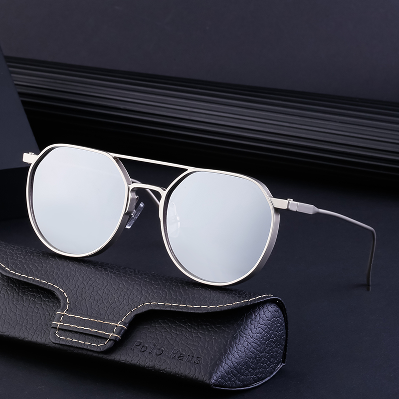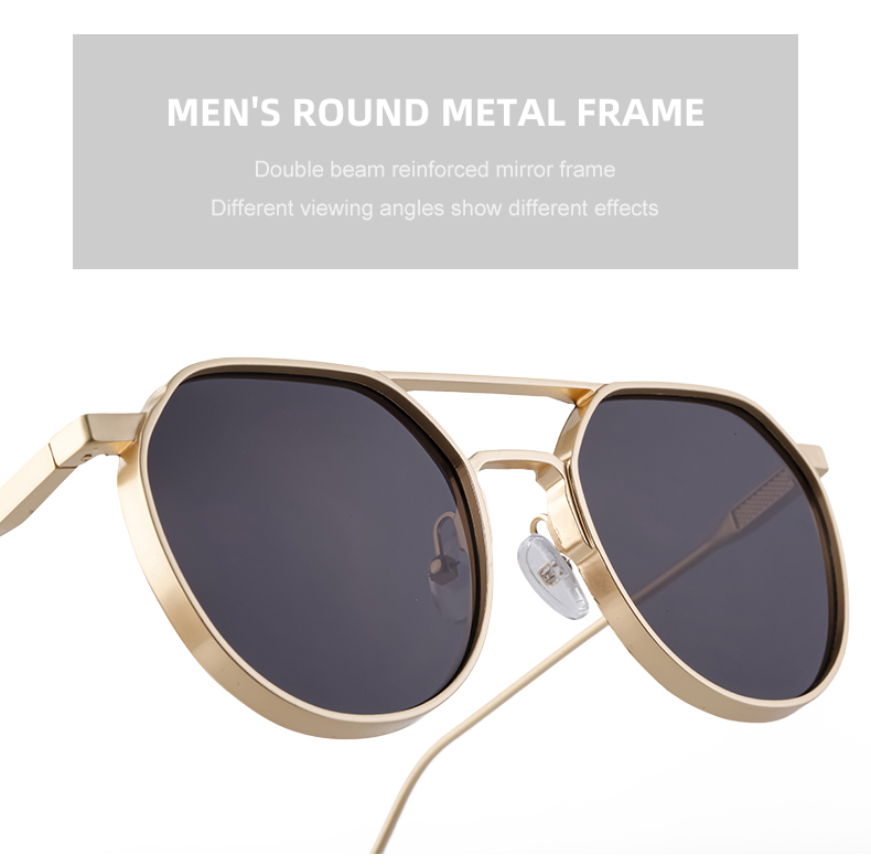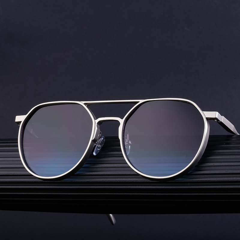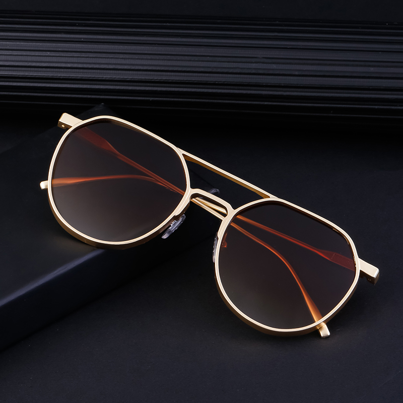 Ces lunettes disposent d’une double barre en métal, apportant une touche robuste et masculine à l’ensemble. La structure en métal confère durabilité et légèreté, ce qui en fait un choix confortable pour un usage prolongé, notamment lors de la conduite. Les verres offrent une protection efficace contre les rayons UV, garantissant un confort visuel optimal pendant les activités en plein air.