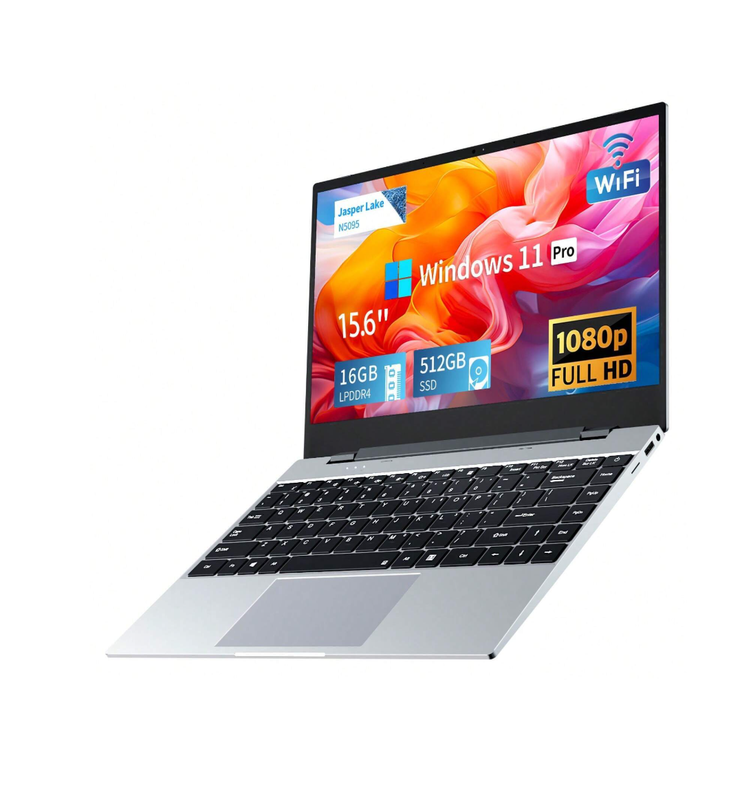 Ordinateur portable PC 15,6 pouces 16 Go de RAM 512 Go SSD Windows 11 Pro Notebook Intel Celeron N5095 Ordinateur de bureau rétroéclairé avec empreinte digitale WiFI sans fil 4.2 Caméra