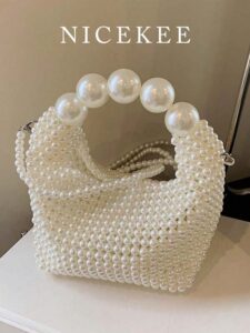 Sac de soirée fait main pour femme. Sac perlé style rétro français, grande capacité, porté main ou épaule, tendance sur internet. Idéal pour les sorties, rendez-vous, shopping, tenues quotidiennes, bureau, voyages, et comme idée cadeau.