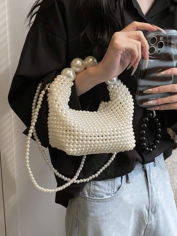 Sac de soirée fait main pour femme. Sac perlé style rétro français, grande capacité, porté main ou épaule, tendance sur internet. Idéal pour les sorties, rendez-vous, shopping, tenues quotidiennes, bureau, voyages, et comme idée cadeau.